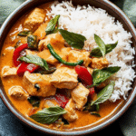 Indulge in the comforting warmth of Thai Red Curry Chicken, a dish that brings the vibrant flavors of Thailand into your home. Tender chicken pieces simmer in a creamy coconut milk sauce infused with aromatic spices and fresh herbs, creating a perfect harmony of sweetness and heat. Ideal for weeknight dinners or impressing guests, this colorful dish is as easy to make as it is delicious.